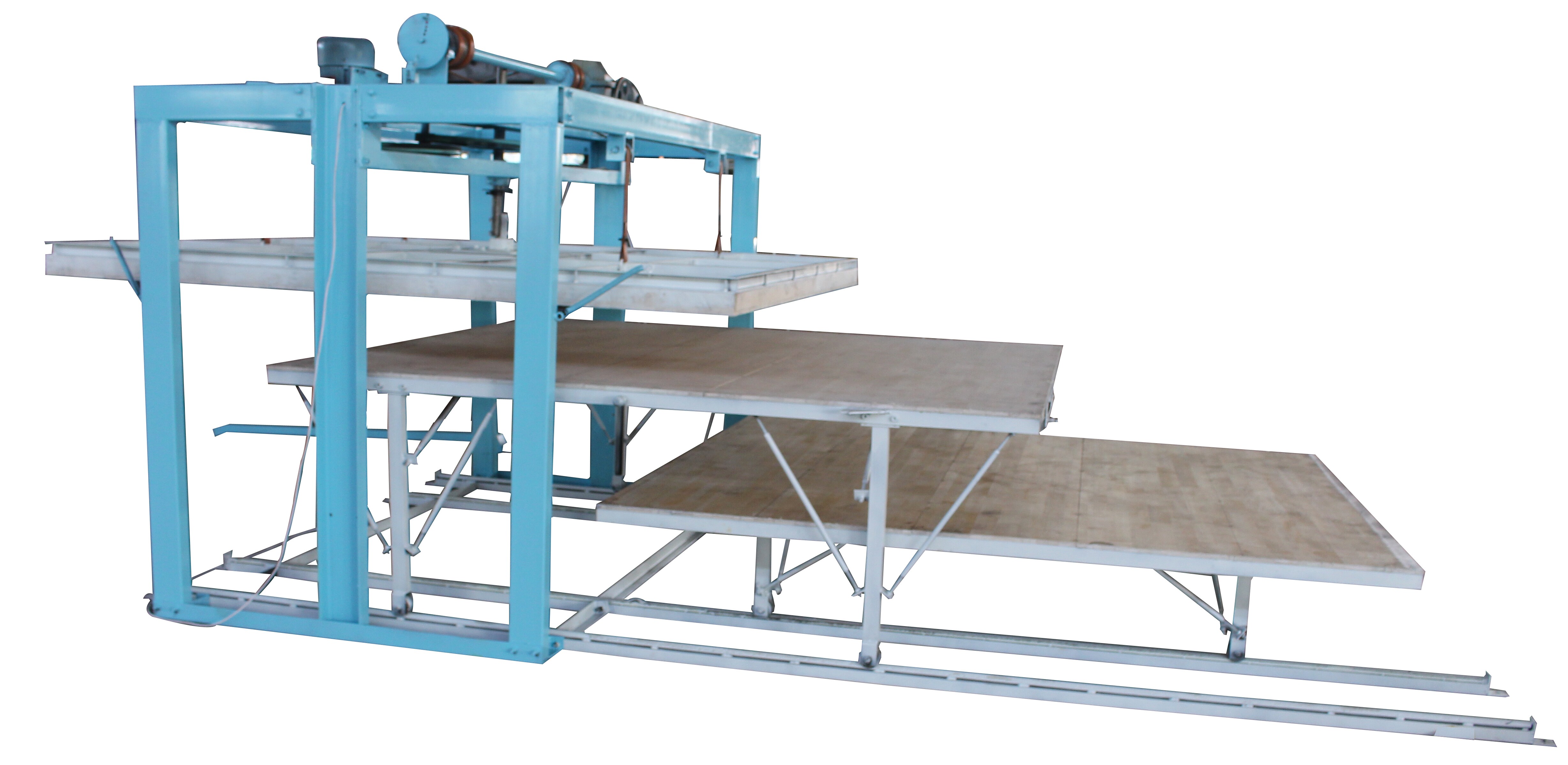 本機(jī)用于純棉棉胎、混合纖維棉胎、踏花被等棉胎的揉制,將棉胎揉制平整,使棉纖維相互抱合粘結(jié)在一起,讓棉胎具有一定的橫向、縱向抗拉強(qiáng)度,可使有網(wǎng)棉胎的網(wǎng)線和棉纖維絞纏在一起。在揉板上貼上專用揉紙揉布,可揉制無網(wǎng)棉胎。