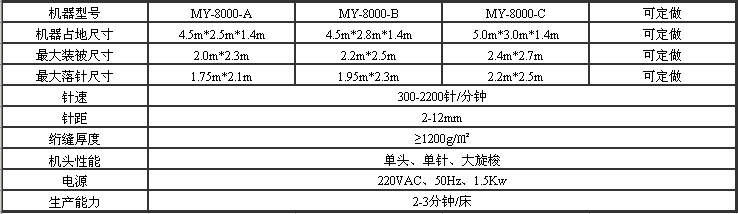 優(yōu)點(diǎn):機(jī)器穩(wěn)定性好,花形尺寸可以調(diào)節(jié)、操作簡(jiǎn)單、絎縫厚度好,針碼均勻,機(jī)器無(wú)聲等。